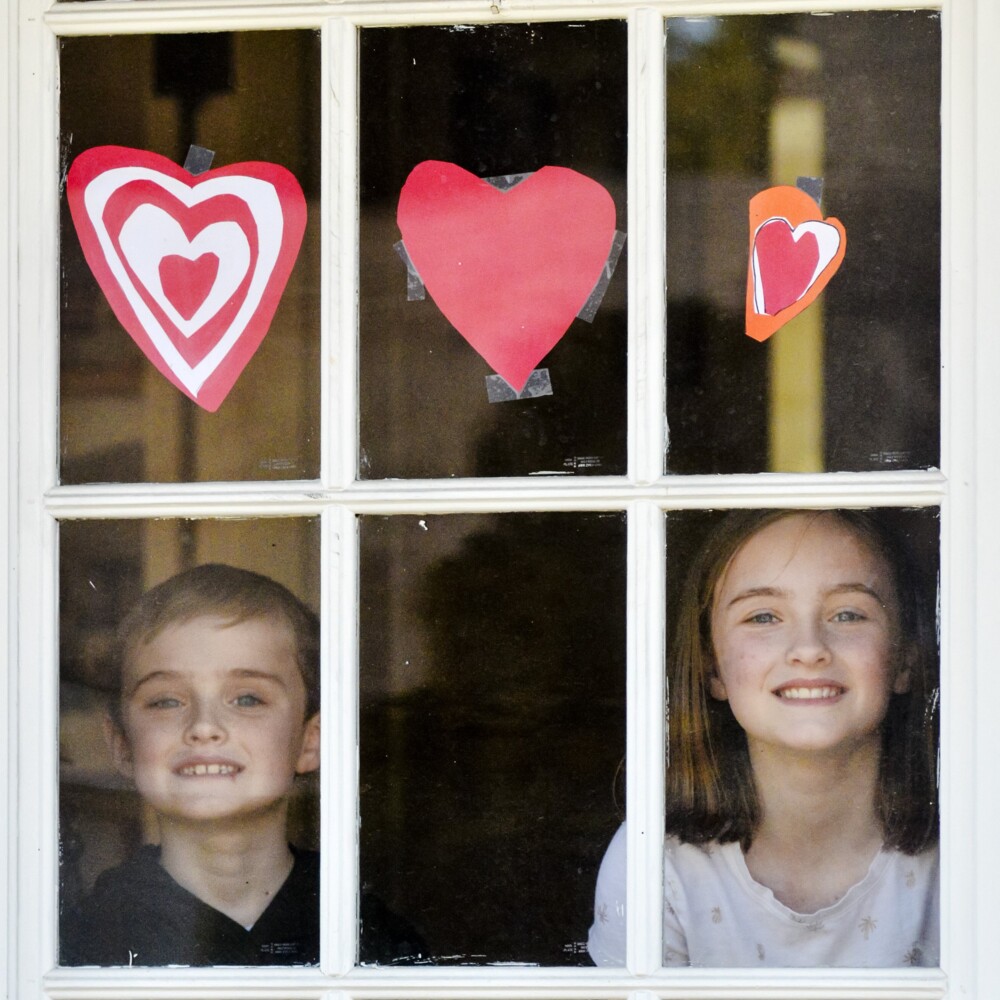 A post on the Facebook pages of the city’s elementary schools encouraged residents to take part in the “Heart Hunt” by putting a heart in their windows. The community activity then encourages children to take walks with their families and to count the hearts they find.