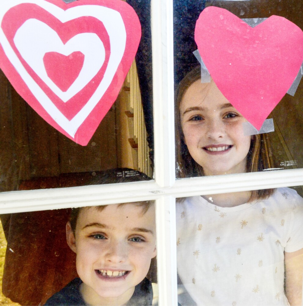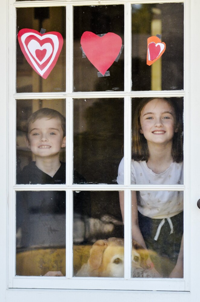 “We have some on our windows, and our kids, when we take walks around the community, love to see those hearts in windows,” said Darek Grant, an at-large city councilor whose children Callan, 7, and Libby, 11, made hearts to put in the windows at the family’s home.