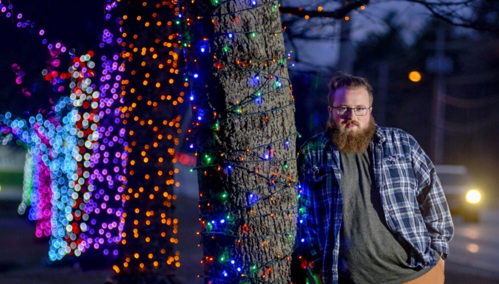 In Manchester, resident and businessman Kaleb Pushard has again fired up his Christmas lights, colorfully decorating 14 trees along a normally busy stretch of U.S. Route 202 through Manchester, in hope they will bring back the same smiles they prompted at Christmastime.