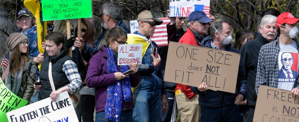 Last Friday afternoon, an anonymous news release was sent out by groups calling themselves ReOpen Maine or Mainers Against Excessive Quarantine, indicating they would be protesting at noon Monday. The news release echoed the same talking points heard in other states where similar protests have been held.
