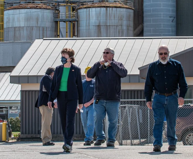 Republican U.S. Sen. Susan Collins along with state Sens. Russell Black, R-Wilton, and Jeffrey Timberland, R-Turner, were there Wednesday to thank workers, see the damage and get a briefing on the investigation and an update on operations from mill manager Jay Thiessen.