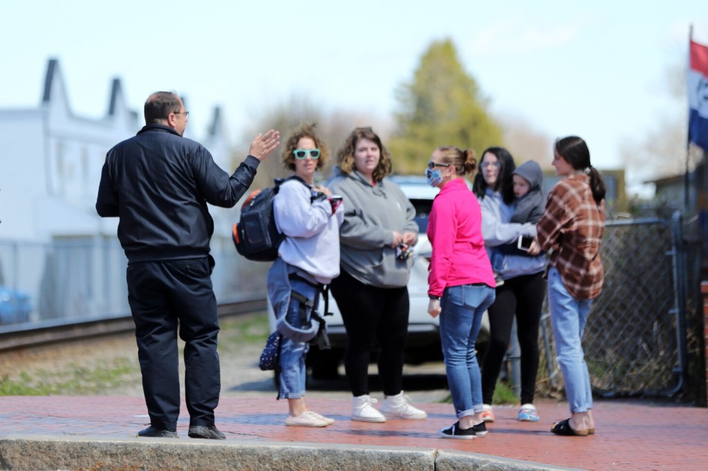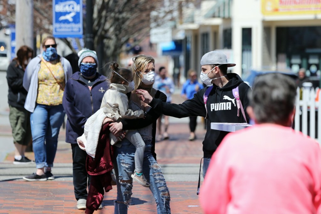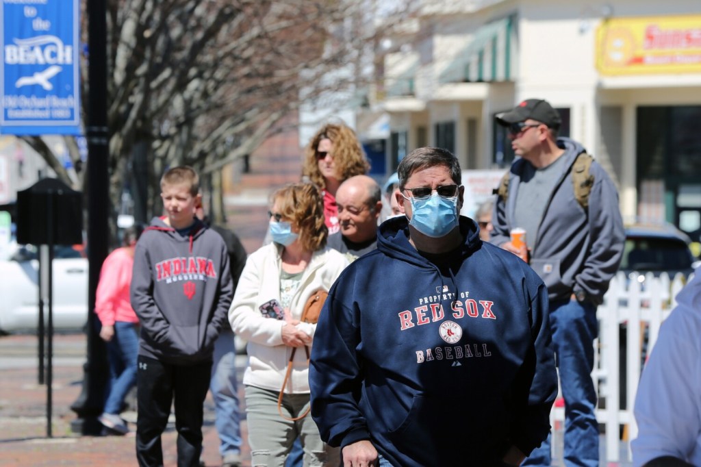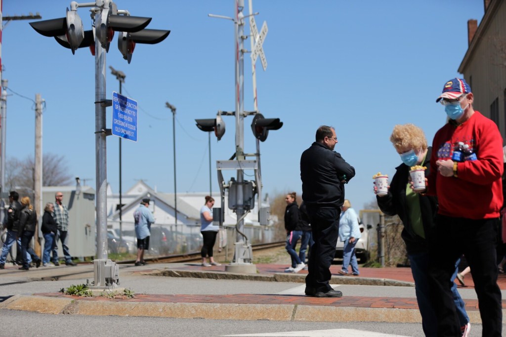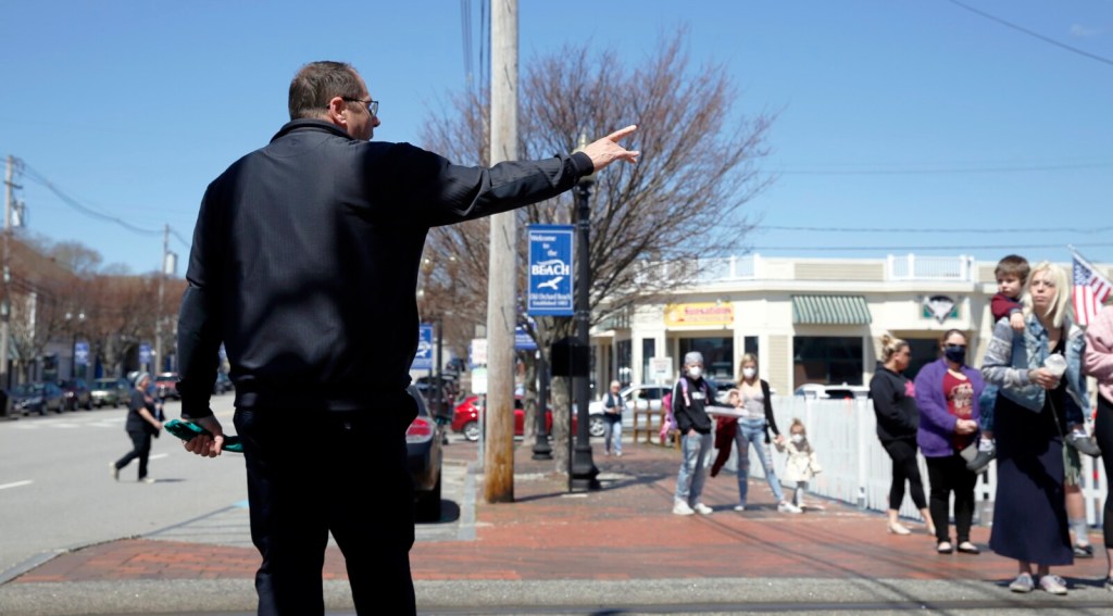 Town officials worked with the establishments to set proper social distancing guidelines for them to follow, with sidewalks clearly marked. On Saturday, Fred LaMontagne, Old Orchard Beach’s fire chief and director of emergency management, stood on an island in the middle of the road to oversee the crowds. He occasionally stepped in to remind people to maintain proper distance but otherwise was pleased with the results.