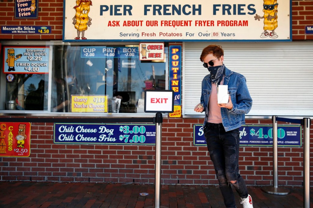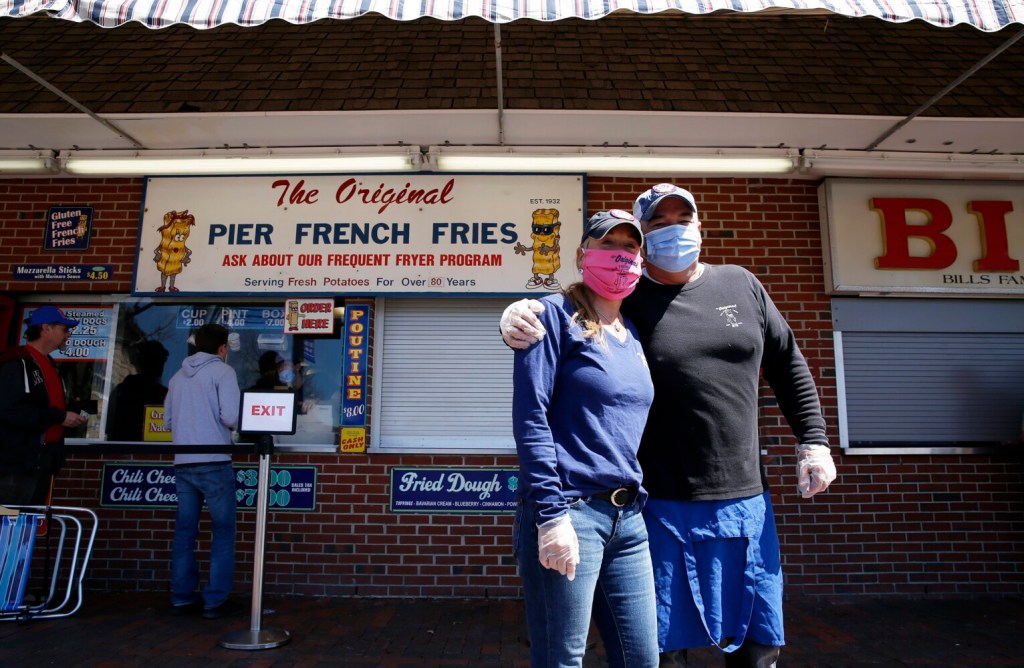 Pier Fries was one of several food establishments that opened for pickup sales Saturday, including Lisa’s Pizza, Rocco’s Pizza, Bill’s Pizza and the Maine Lobster Cafe. But Pier Fries, which first opened in 1932, clearly holds a special place in the hearts of its customers.