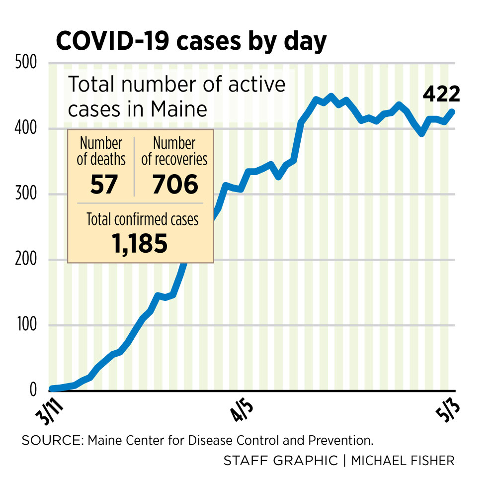 Sunday’s totals come as Mainers debate how best – and especially how fast – to reopen the state’s economy and state Republican leaders are demanding the removal of Gov. Janet Mills’ emergency powers.