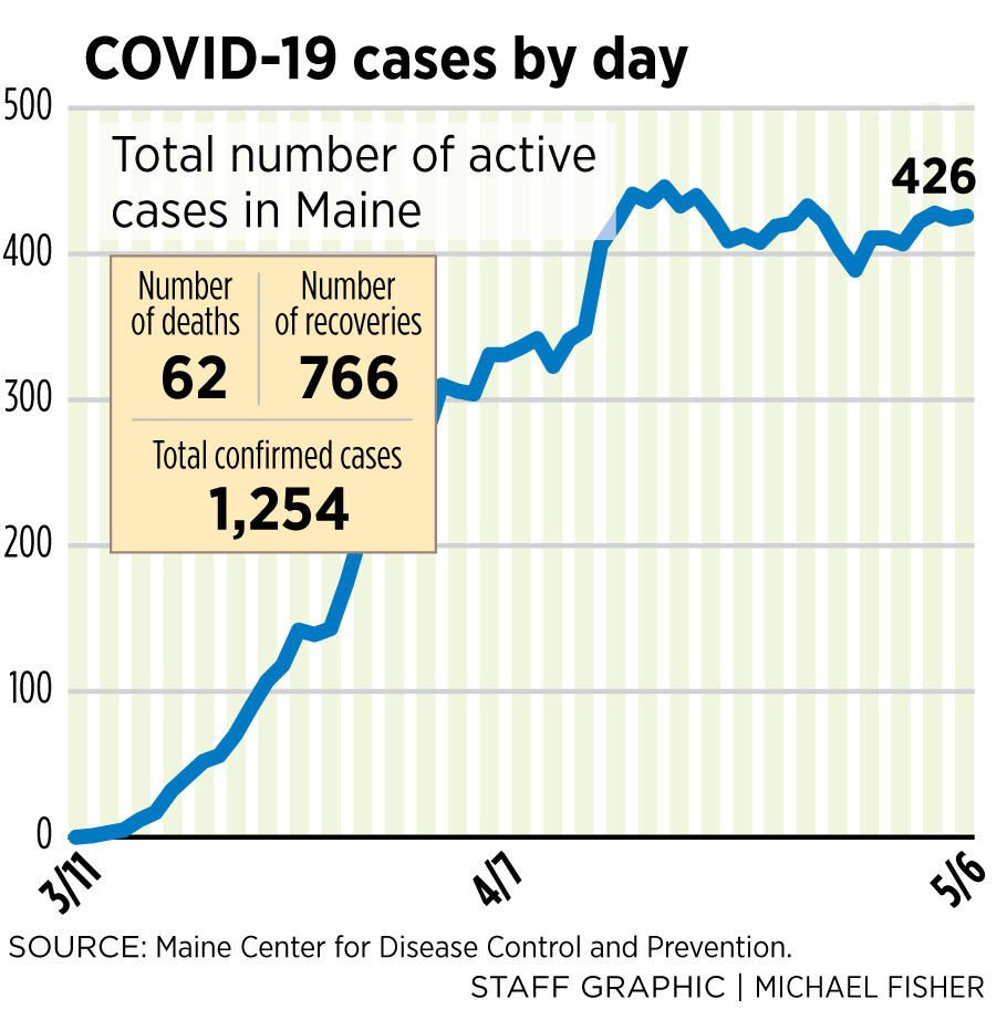 Mills did not provide any details but indicated there may be some changes to the plan in the next few days. She discussed the options at a media briefing where the Maine Center for Disease Control and Prevention announced that another Mainer had died of COVID-19 and reported 28 new cases of the disease caused by the coronavirus, bringing the total number of deaths to 62 and cases to 1,254.