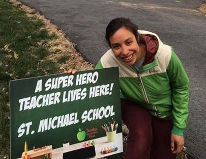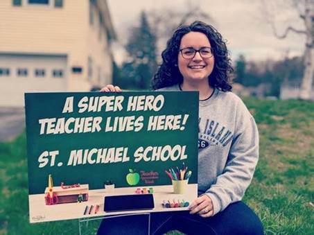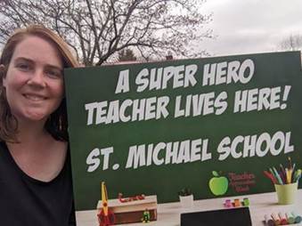 The Parents Association at St. Michael School in Augusta offered its support and gratitude during National Teacher Appreciation Week by posting “A Superhero Teacher Lives Here! St. Michael School” signs in the yards of its teachers during the week.