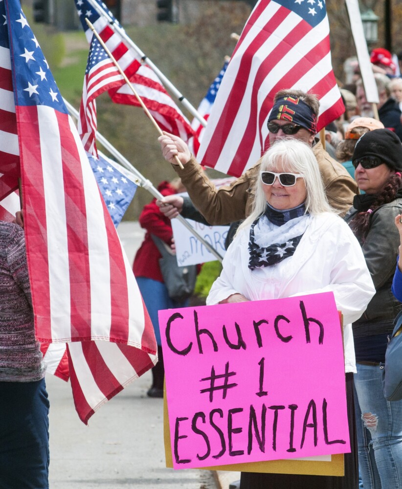 Former Gov. Paul LePage, who recently returned to Maine from Florida, addressed a crowd of several hundred people in Augusta from inside a Lexus SC430 parked about 30 feet away. LePage remained in the car because he is self-quarantined, and his remarks were broadcast via cellphone.