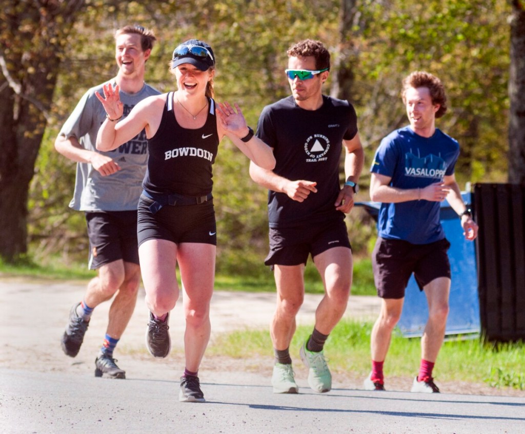 She ran varsity track and cross country all four of her years at Bowdoin, winning the Maine state college indoor track championship in the 5,000 meters and was a four-time New England Small College Athletic Conference All-Academic award winner in track and cross country. And she was selected as the Kennebec Journal’s athlete of the year multiple times, in track and field, nordic skiing and cross country.