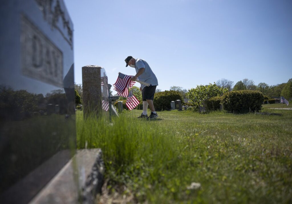 The city of Lewiston recruited veterans groups and other volunteers to place nearly 7,500 flags by veterans’ gravestones at 13 cemeteries before Memorial Day.