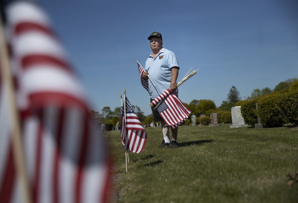 Those activities include putting more than 1,500 flags on the graves of veterans at Forest City Cemetery in South Portland. Cobb – a Bronze Star recipient who served in the Army for 20 years – was among the veterans who placed those flags on Friday.