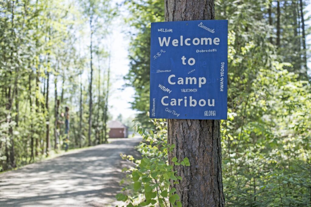 The Camp Caribou welcome sign greets campers about a mile inside the entrance to the camp in Winslow on Wednesday. Michael G. Seamans/Morning Sentinel