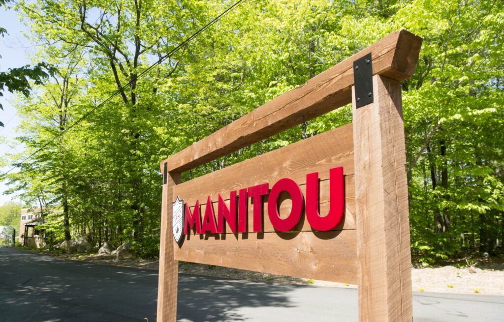 The Camp Manitou welcome sign greets campers Wednesday at the entrance to the camp in Oakland. Michael G. Seamans/Morning Sentinel