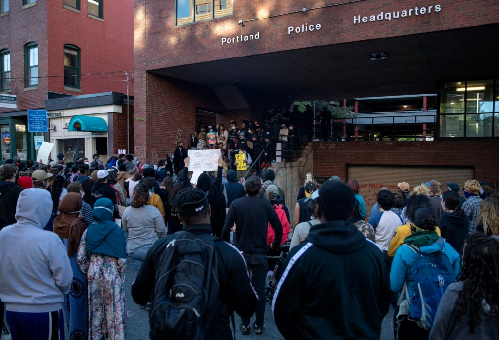 More than 300 protesters marched the streets of Portland and demonstrated for hours outside the Portland police station Sunday afternoon, demanding to meet with Chief Frank Clark to discuss their concerns about racial bias after a black man’s death at the hands of Minneapolis police.