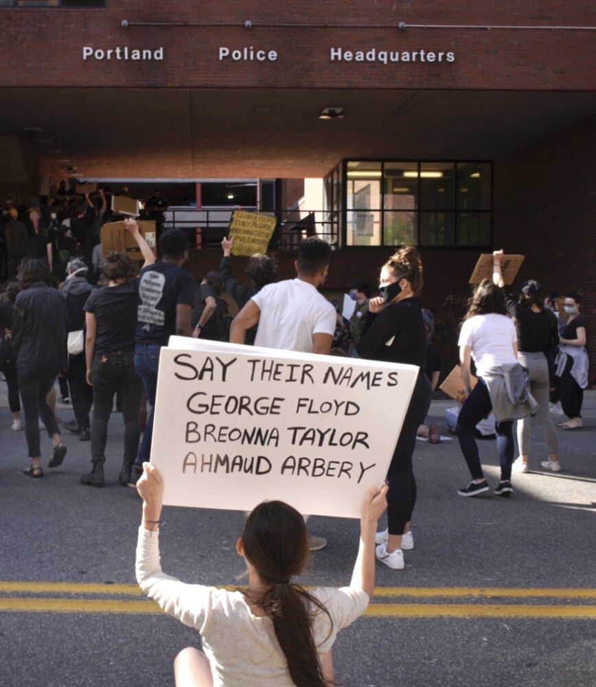 “I’m sickened by the killing of George Floyd, and as a white person I wanted to show up,” Erin Brown of Portland said. “I don’t want it to be their problem. It’s all of our problem.”