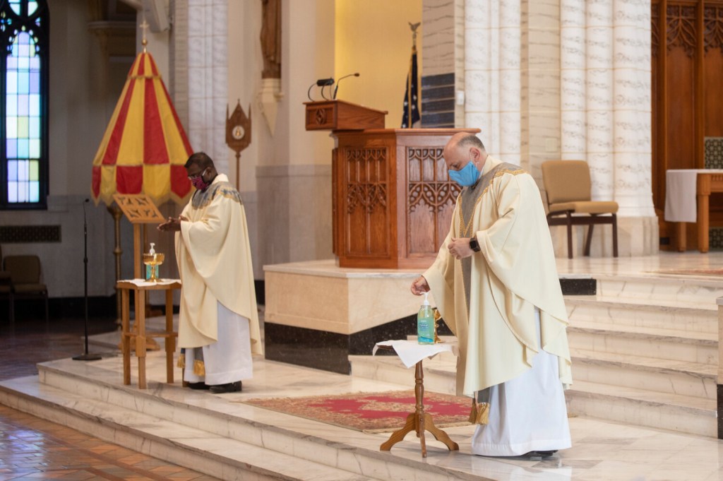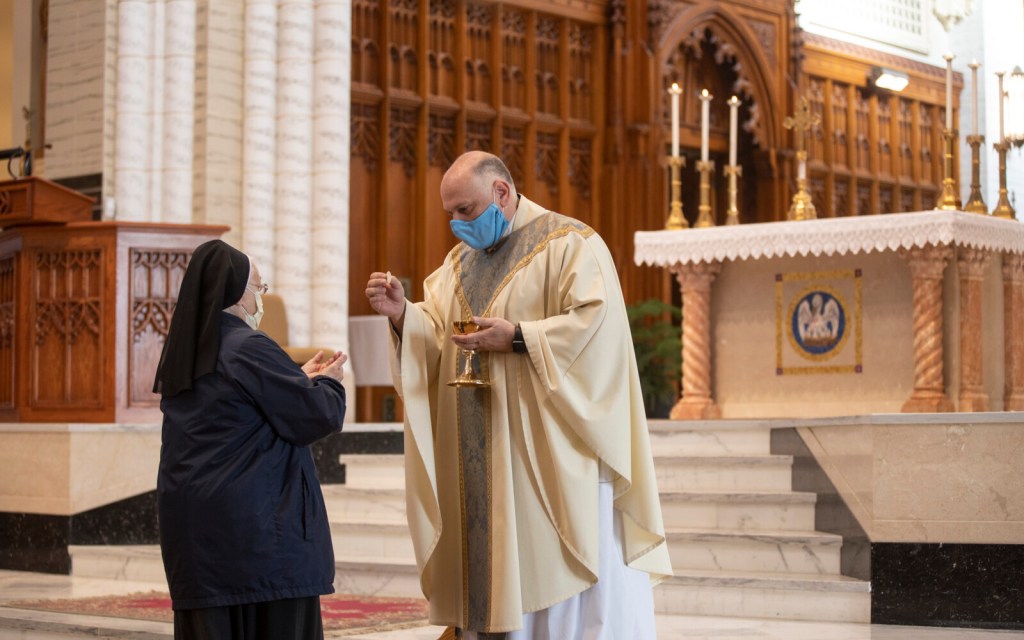 Monday’s was among the first in-person Masses to be celebrated since the state began allowing indoor religious services on Friday.