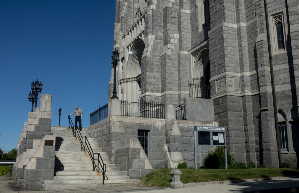 The Basilica of Saints Peter and Paul in Lewiston celebrated in-person Mass on Monday for the first time in more than two months. But it was a far different experience than before the coronavirus pandemic.