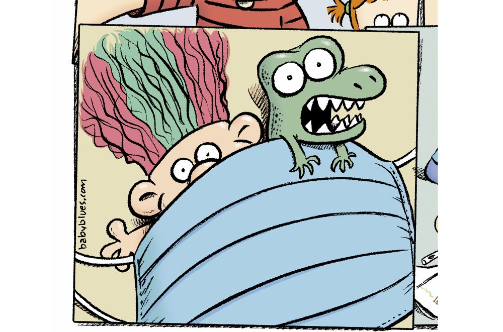 Kirkman and “Baby Blues” co-creator Jerry Scott had some characters wear face masks when coming from outside, and Chatfield’s sports-loving hero is now being schooled at home.