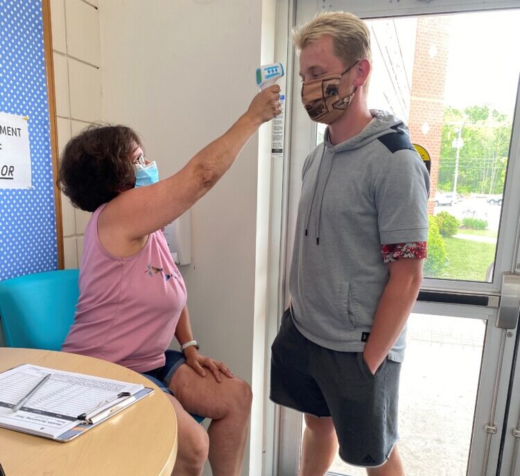 Anyone entering the center will have his or her temperature taken and will be asked a series of questions. No one with a temperature or more than 100.4 will be allowed into the building.