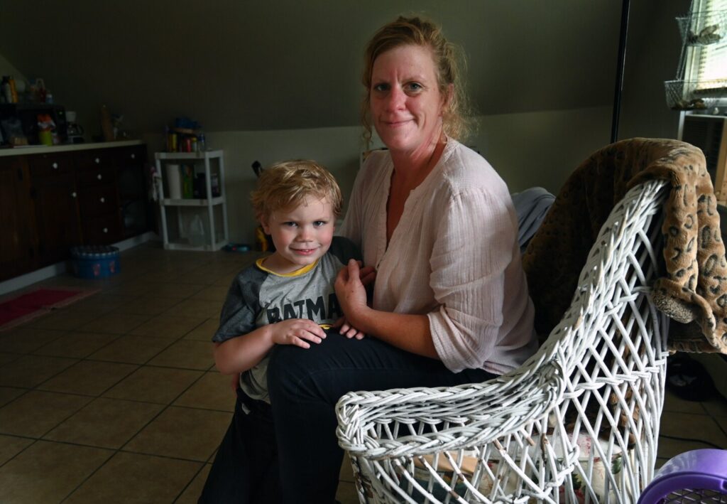Rebecca Giles at her apartment with her son, Andrew Benner. Shawn Patrick Ouellette/Staff Photographer