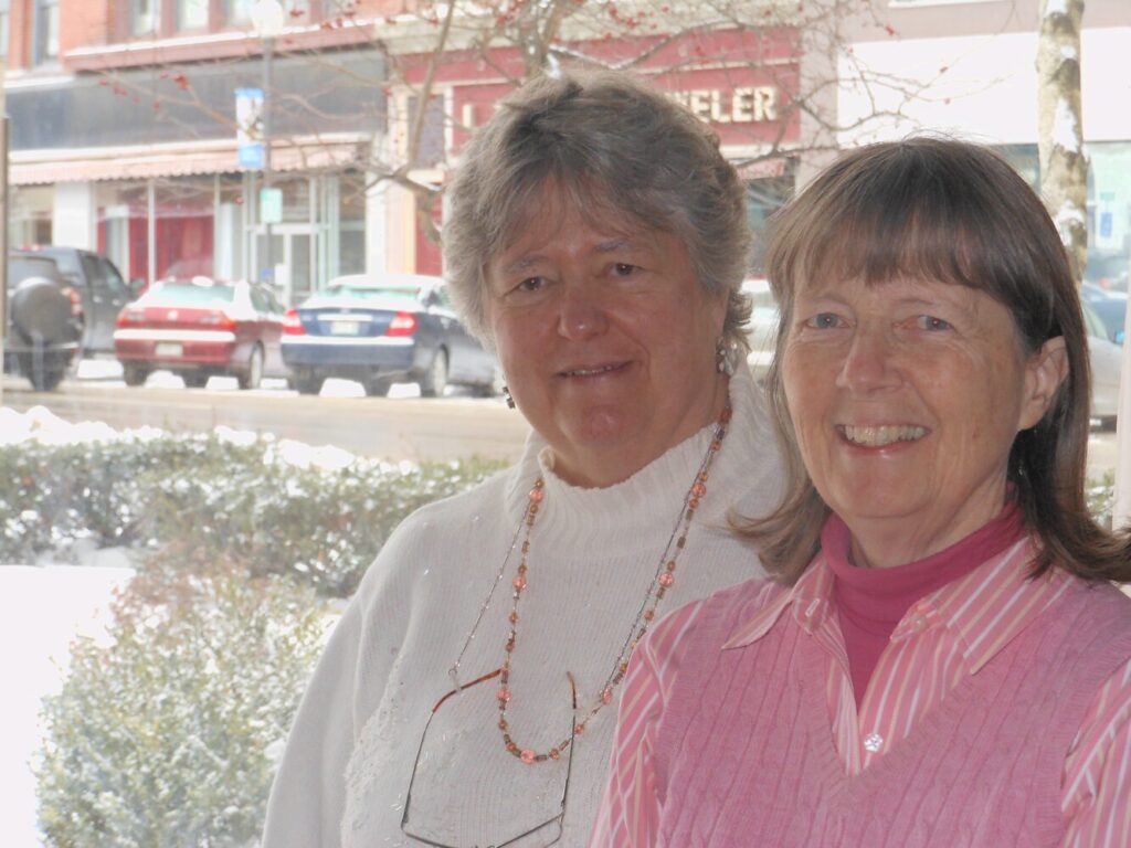 Faye Nicholson, left, and Jackie Dalton, co-directors of REM, said Monday the organization had to close its Waterville office temporarily when the coronavirus pandemic hit in March. REM also had to cancel all of its scheduled events for the year. Nicholson and Dalton, who are not paid for their work, continue to connect with REM partners and members virtually. Photo by WMStreet