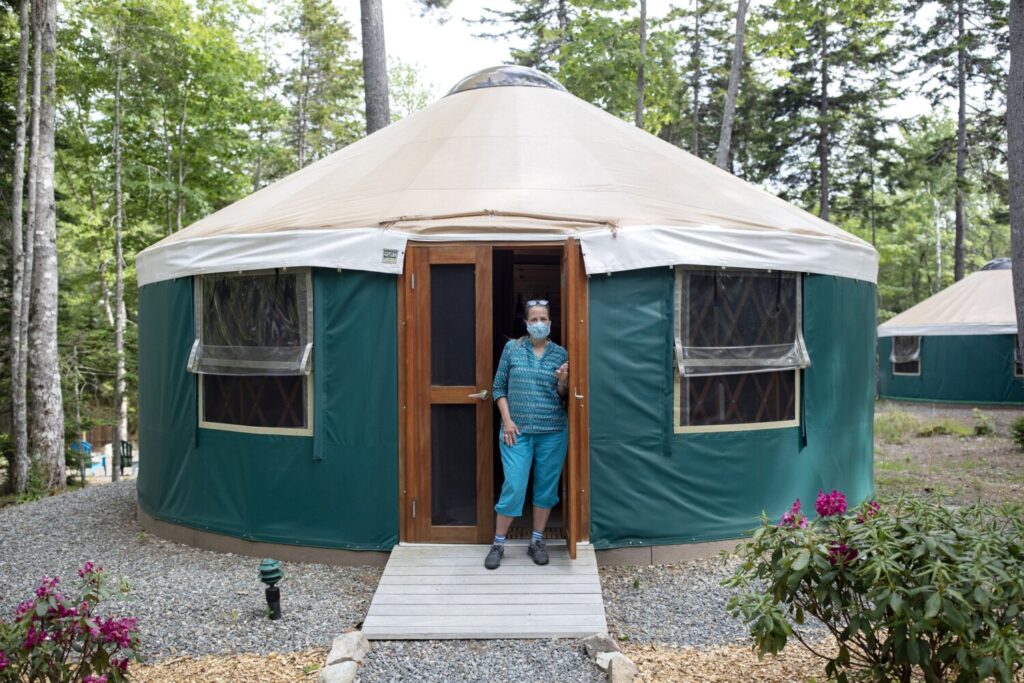 Maine-based travel writer Hilary Nangle poses for a portrait outside of the yurt she and some friends are staying at in at Acadia Yurts in Southwest Harbor. Brianna Soukup/Staff Photographer