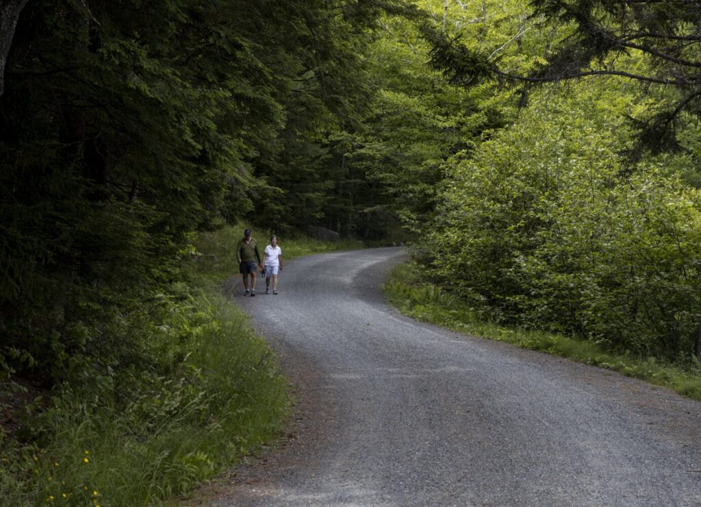 Joan and Mike Furnari walk along a carriage trail at Acadia National Park on June 25. The couple, who live in Southwest Harbor, walk the carriage roads almost every day. They said it has been quiet in the park, but they noticed an increase in visitors over the past week and expect that to continue as the summer goes on. Brianna Soukup/Staff Photographer