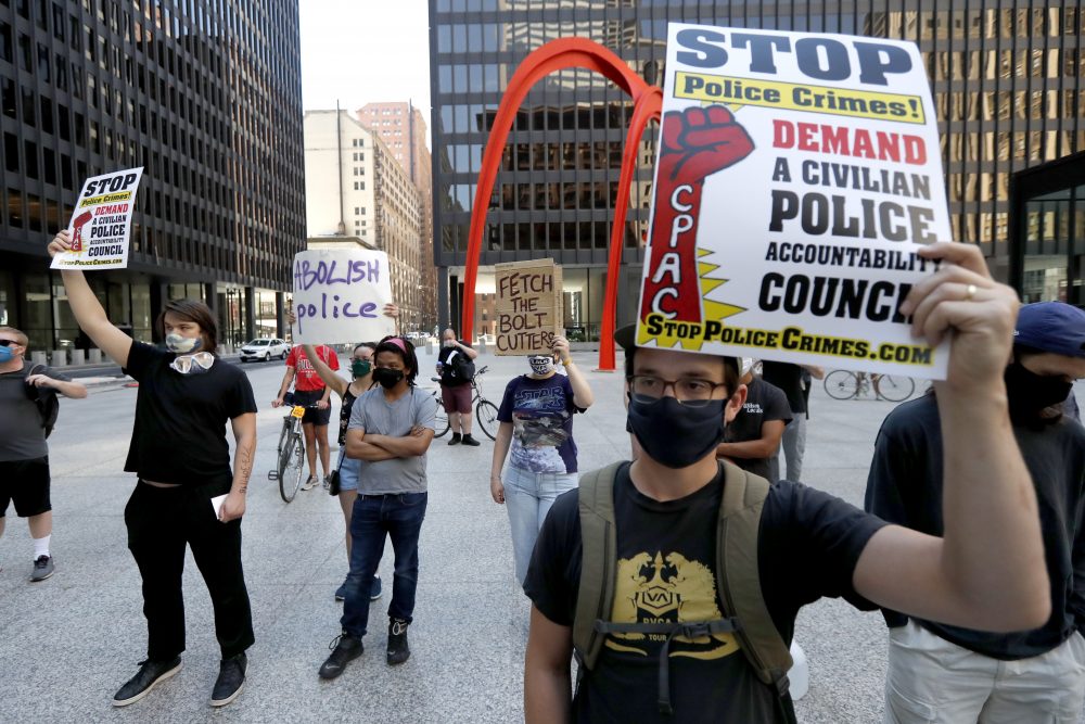 Protesters gather on Federal Plaza Thursday, July 23 after a collection of Chicago activists groups announced they are filing a federal lawsuit against the Chicago Police Department, Fraternal Order of Police, and the federal government, in Chicago. The lawsuit also asks a judge to prevent agents in Chicago from making arrests or detaining people without probable cause and to require agents to identify themselves and their agency before taking either action and explain why someone is being arrested. AP Photo/Charles Rex Arbogast