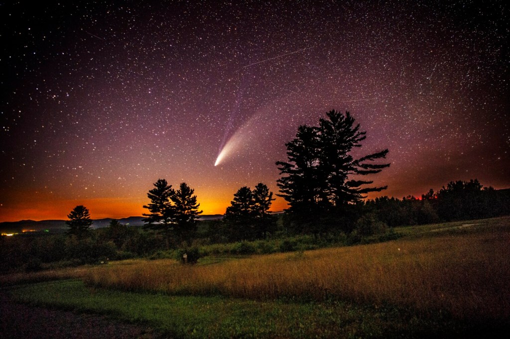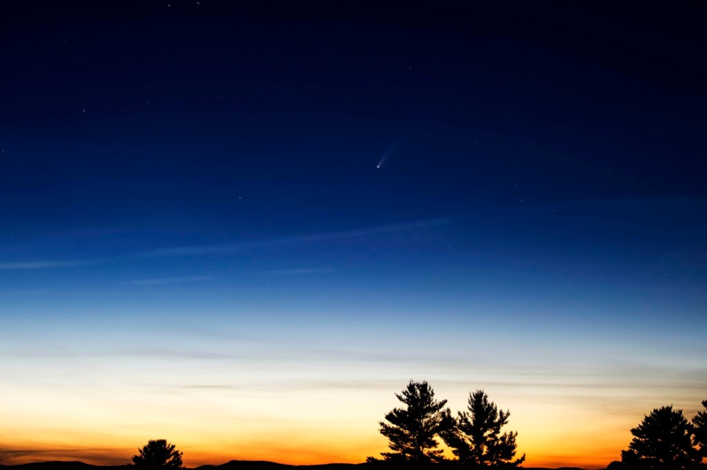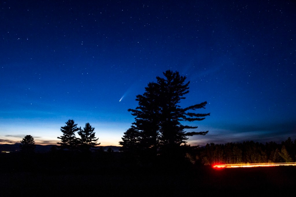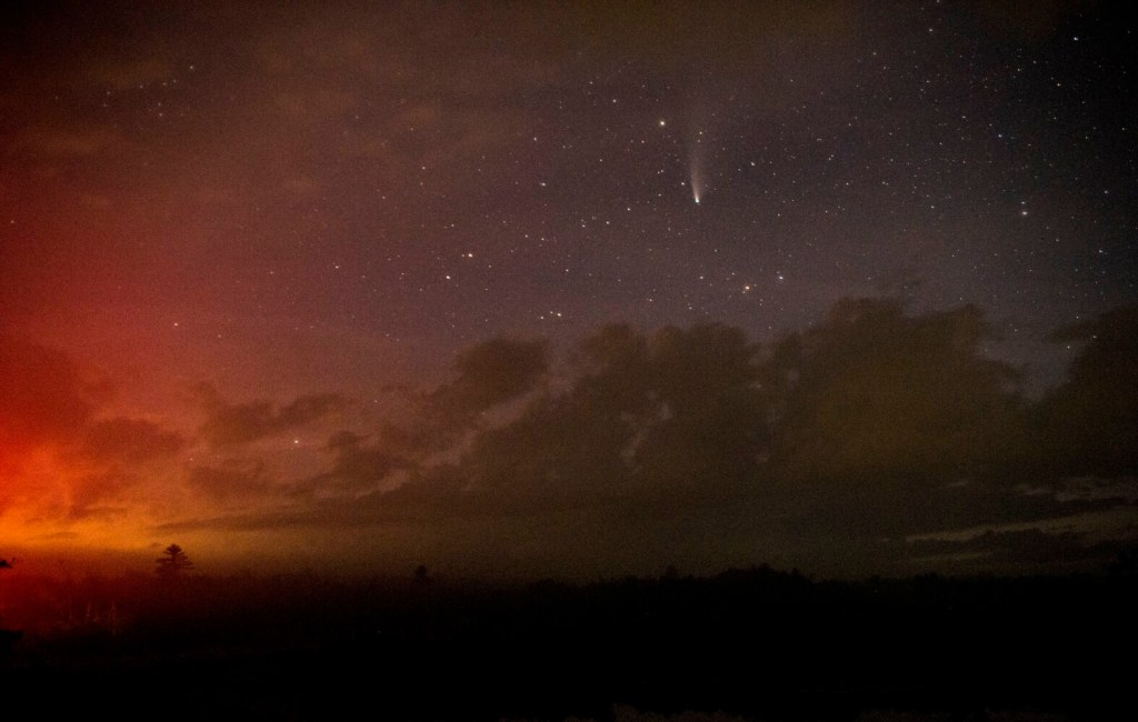I’ve been working in central Maine for 10 years. I’ve had plenty of time traveling the state to create a catalog of spots to visit for a view of the night sky. The comet was not on my radar as the eclipse of a couple of years ago was. I planned for months to travel to Tennessee to view the totality. The comet required a different plan.
