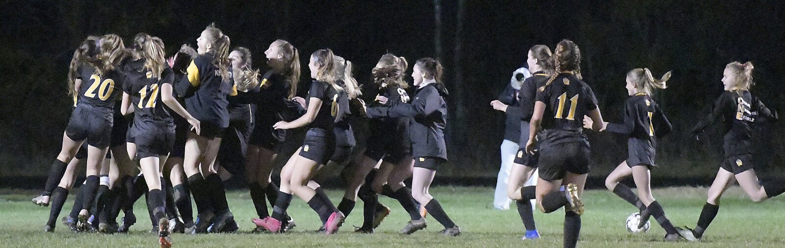 Maranacook girls’ soccer players celebrate a Class C South quarterfinal victory in 2019. Maranacook Athletic Director Brant Remington says he is 90 percent optimistic that the school will play sports this fall. Andy Molloy/Kennebec Journal