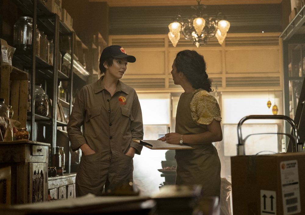 This image released by BBC America shows Jodie Comer, left and Carolina Valdes in a scene from “Killing Eve.” Nick Wall/BBC America via AP