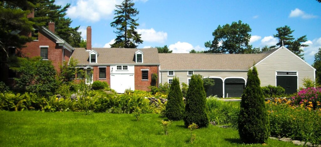 Connected brick house, ells and barn: The Frances Perkins Homestead National Historic Landmark in Newcastle. Photo courtesy of Frances Perkins Center