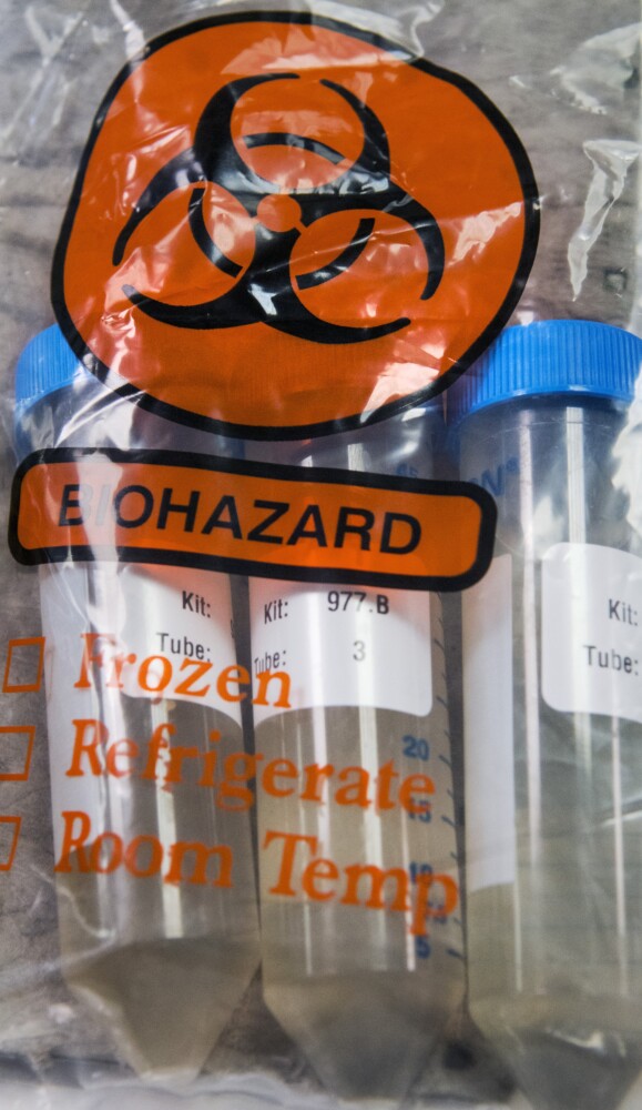A sample of wastewater, on July 23, that the Greater Augusta Utilities District sent out for COVID-19 testing. Joe Phelan/Kennebec Journal file Buy this Photo