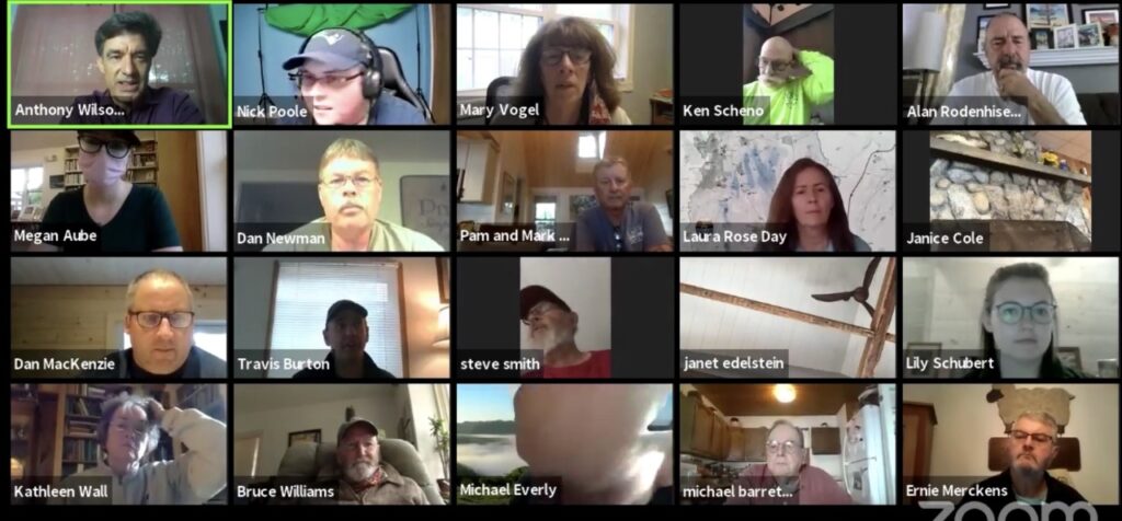 Belgrade’s 3,189 year-round population typically doubles in the summer, Wilson said. More than 30 participants tuned in via Zoom, and a handful viewed on Facebook.