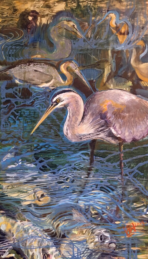 Speaking of her motivations, Johnson said, “I am an artist and an educator. I approach my art work being inspired by scientific illustration and at the same time, abstracted imagery. I find inspiration in what I have seen and experienced while exploring the woods and waters in and around Maine. I can see and feel how fast climate change has taken over our natural world. My paintings strive to show you an image of a creature that you may recognize and at the same time let you see the trouble brewing. Perhaps nesting birds are tangled in the fishermen’s nets or the forest around the loon is menacing in the painting. On the other hand, I enjoy using a magnifying glass to examine specimens and recreate their structure just as I see it. My art illustrations turn into more realistic forms and textures using large scale drawings and pen & ink sketches. I want the viewer to be drawn into the work so that they take the time to see the amazing forms found in nature. My hope is that a drawing or painting might inspire a meaningful connection between the viewer and the changing landscape,” according to the release.