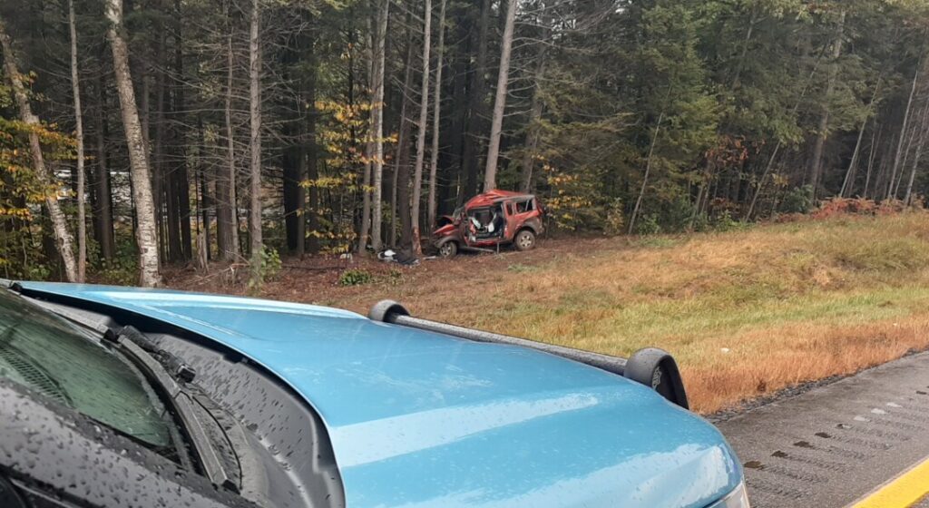 An 18-year-old died Friday following a crash on Interstate 95 in Sidney. Photo courtesy of Maine State Police