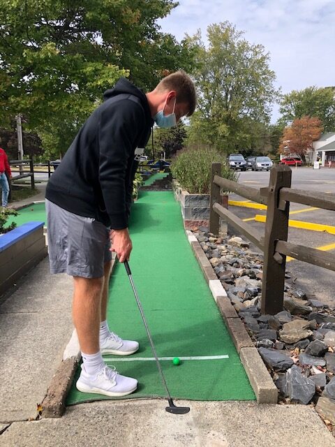Andrew Mayo takes aim during mini golf on ShineOnCass Day at Gifford’s to benefit Big Brothers Big Sisters of Mid-Maine. Mayo, a senior at Messalonskee High School, is a Big Brother in the ShineOnCass youth mentoring program, created in memory of Cassidy Charette. Photo courtesy of ShineOnCass Foundation