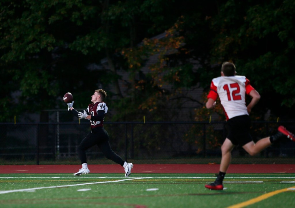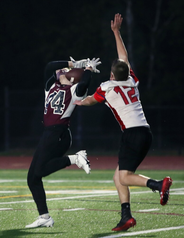 When Brunswick inserted its skill position players back into the game, the tide quickly turned, especially after a long interception return for a score by Cody Larson, an experienced defensive back. Brunswick eventually went ahead 40-34, only to have Blessington hook up with his favorite target, Shea Farrell, for the tying touchdown and go-ahead 2-point conversion with 1:54 left in the final 15-minute quarter of running time.