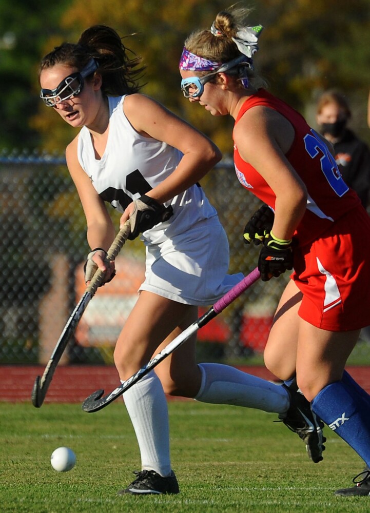 “Two strong programs, we knew it was going to be a fun game. I had some freshmen on the sidelines that said ‘I’ve never seen such an intense field hockey game,’ ” she said. “This is something that we strive to do every year, is beat Skowhegan. If you look at that scoreboard, I don’t know how many years (of state championships) are up there. We want to have a scoreboard like that.”