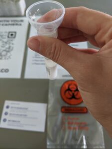 The University of Maine at Farmington reported its first case of COVID-19 on campus, which was revealed through a round of asymptomatic testing. A technician holds a test the university administered Sept. 4. Andrea Swiedom/Franklin Journal