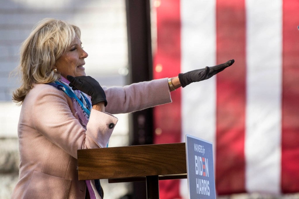 Jill Biden spoke for about 15 minutes. She talked about how proud she is to be an educator every time she hears stories of how teachers are navigating the pandemic. She reminisced about meeting her husband back in the 1970s, on a blind date, when he showed up at her townhouse in a crisp suit – looking far different from most of the men she’d dated to that point.