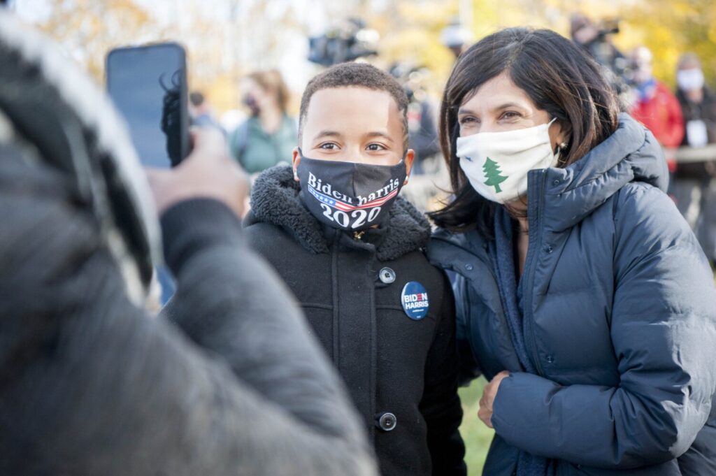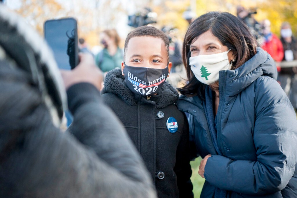 Sara Gideon, Maine House speaker and Democratic nominee for the U.S. Senate, poses for a picture with Keny Cistone, 10, during a campaign event in Bangor on Wednesday. Michael G. Seamans/Morning Sentinel