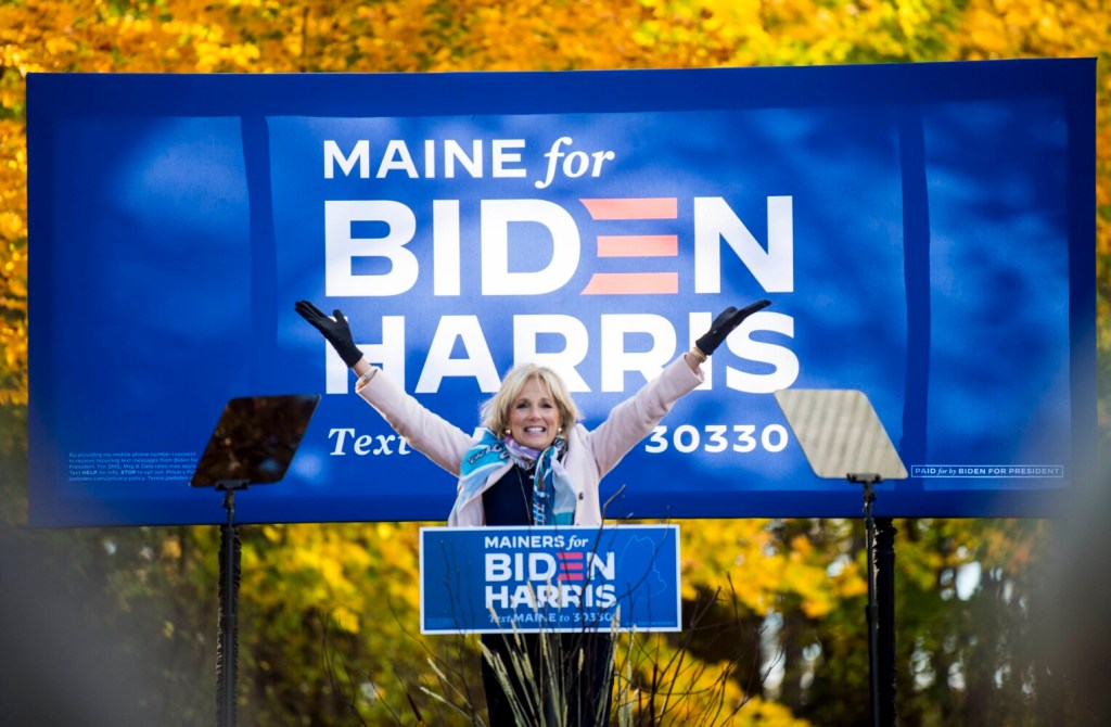 “With a blue Senate, Joe is going to be able to do so much more to get our country back on track, and Maine is critical,” Jill Biden told a crowd of about 100 masked and physically distanced individuals Tuesday afternoon outside the Thomas Hill Standpipe, a Bangor landmark. “That’s why you and Joe want Sara Gideon to be in the United States Senate. All eyes are on you, Maine.”