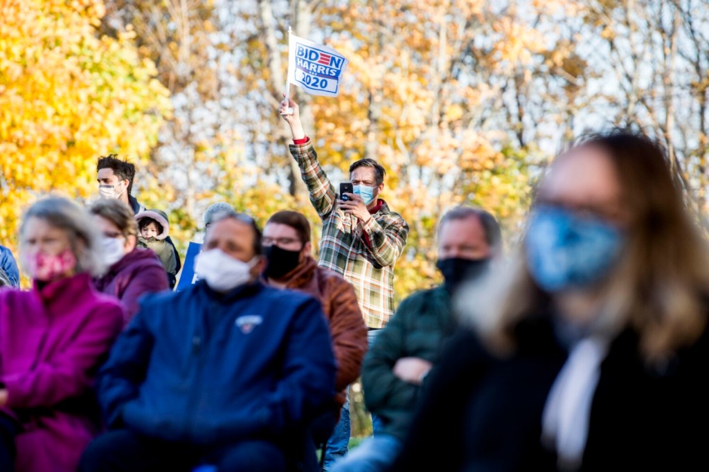 Evelyn and Warren Silver of Dedham were among those who came to hear Biden speak. They said they’re hopeful for change this election and have been continually upset and discouraged by Trump’s leadership.