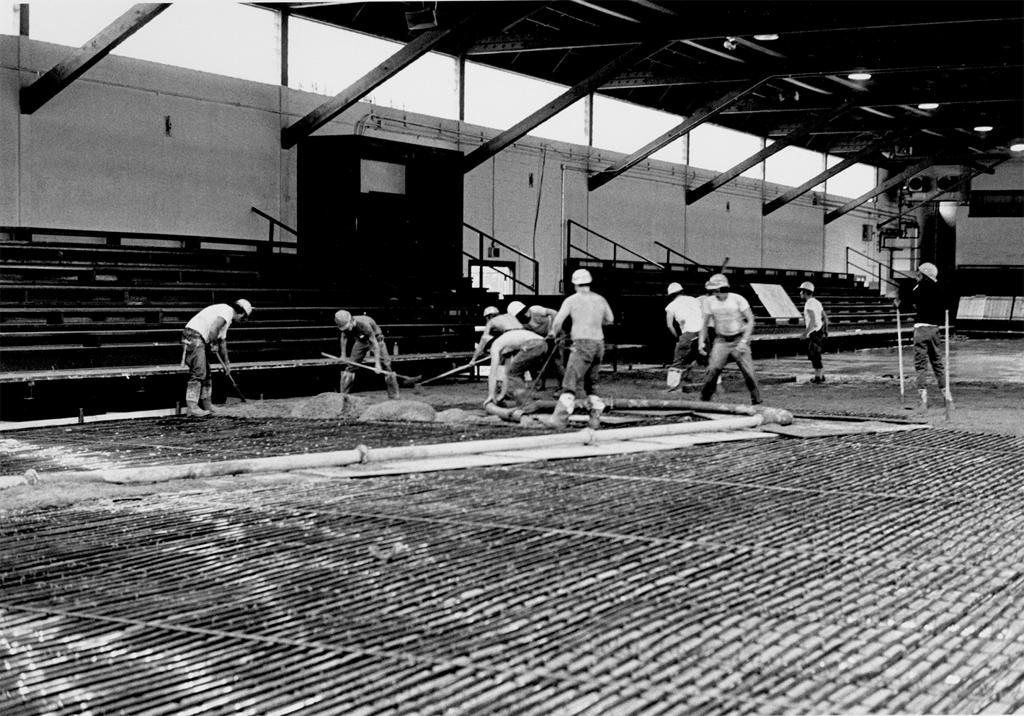 The field house, lobby and pool were added to the older athletic center around 1967.