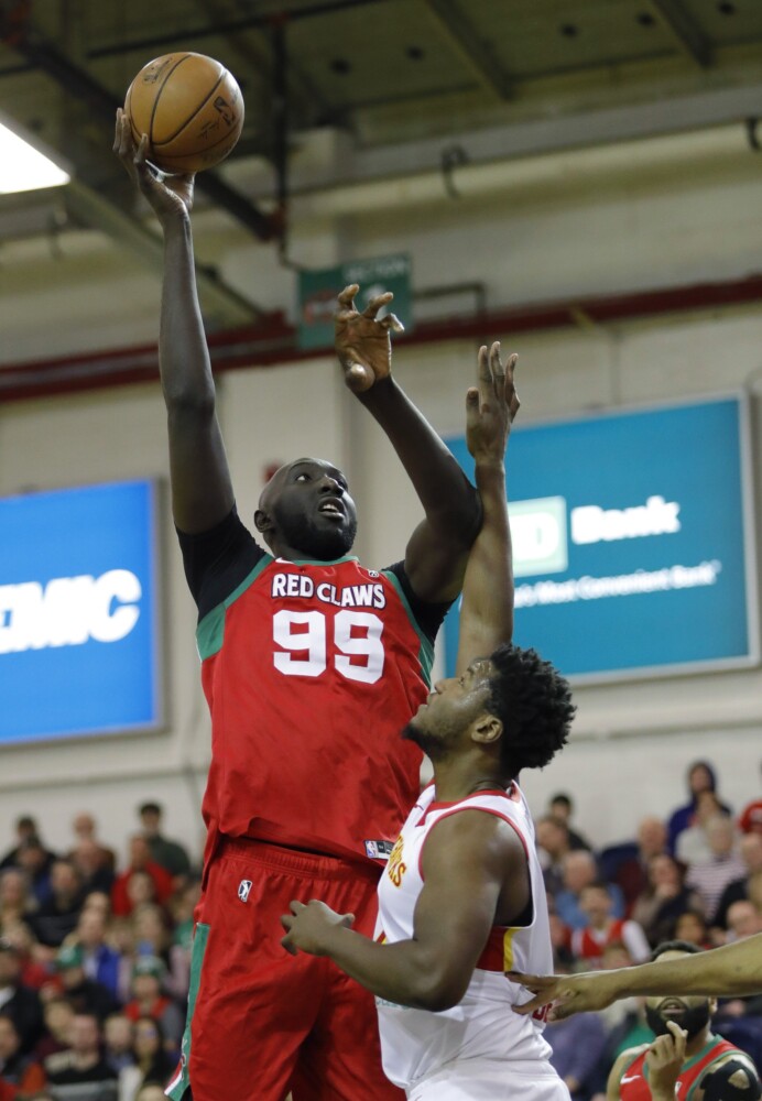 Tacko Fall, left, played in 29 G League games with Maine Red Claws last season. He averaged 12.9 points, 11.1 rebounds, and 2.9 blocks. Boston signed him to another two-way contract, which means he might be spending more time in Portland next season. Joel Page/Staff Photographer