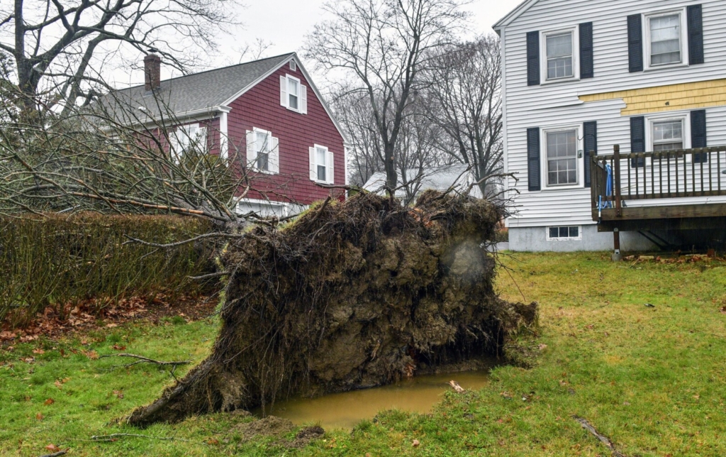 High winds uprooted a tree during an overnight storm on Davenport Street in Augusta. Homeowner Shawn Totman said the tree did not hit his or his neighbor’s house. Joe Phelan/Kennebec Journal Buy this Photo