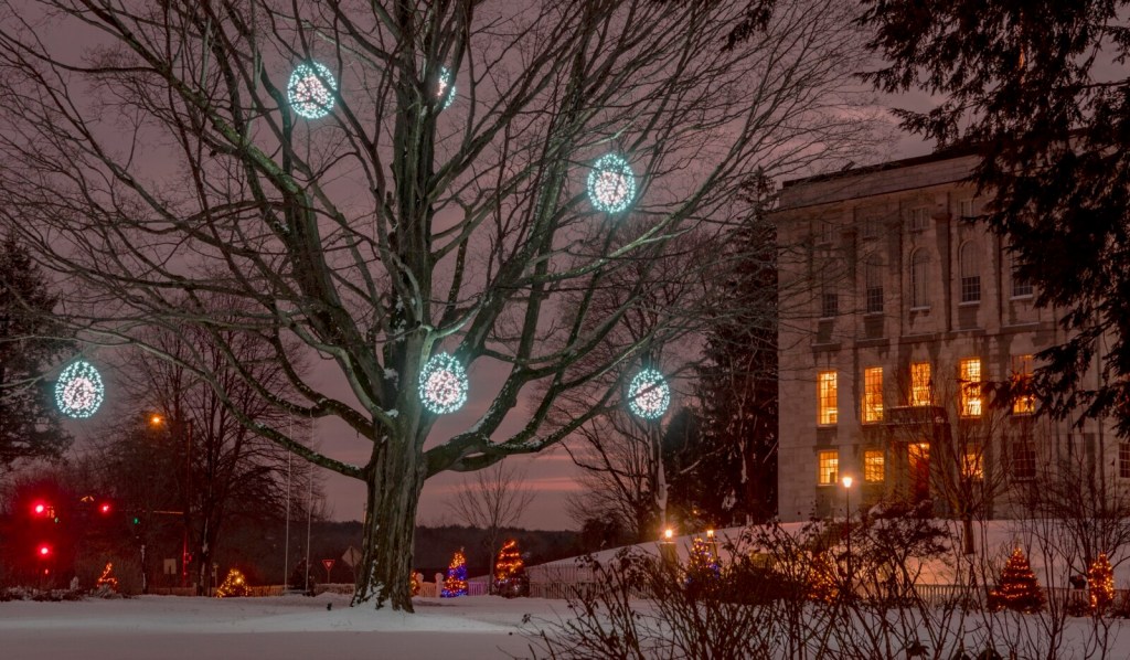 AUGUSTA — Holiday lights illuminated the Blaine House, the governor’s mansion, Friday night. A news release said that Blaine House’s holiday display of decorated trees is dedicated to the resiliency of Maine people amidst the COVID-19 pandemic. This year’s theme, “A Celebration of Resilience,” pays tribute to Maine’s frontline workers and those who have lost their lives to the coronavirus pandemic. It also pays tribute to Maine’s commercial fishing fleet, which recently lost four members of its community.