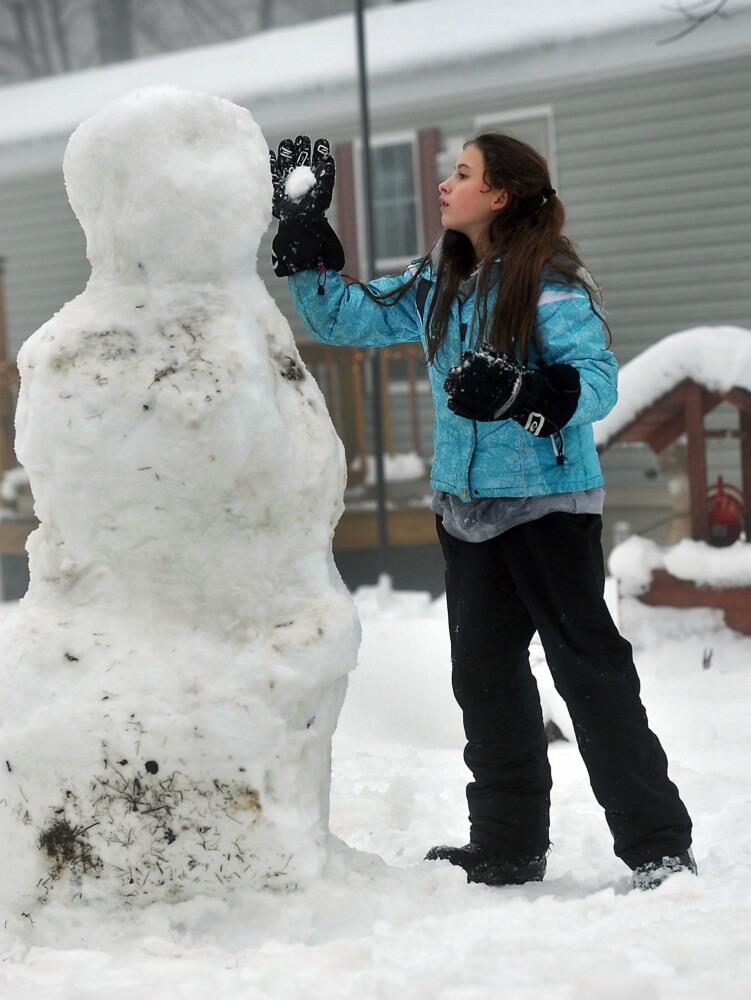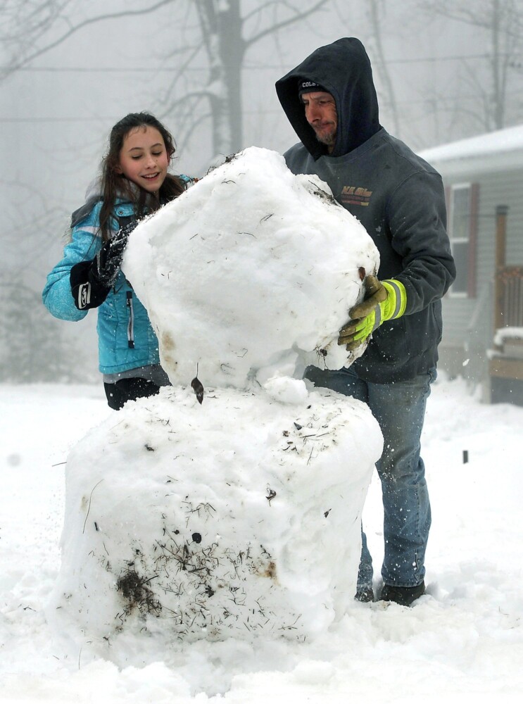 Emma Stevens and her father, William, picked the right weekend to build a snowman, with conditions Sunday that were just right.