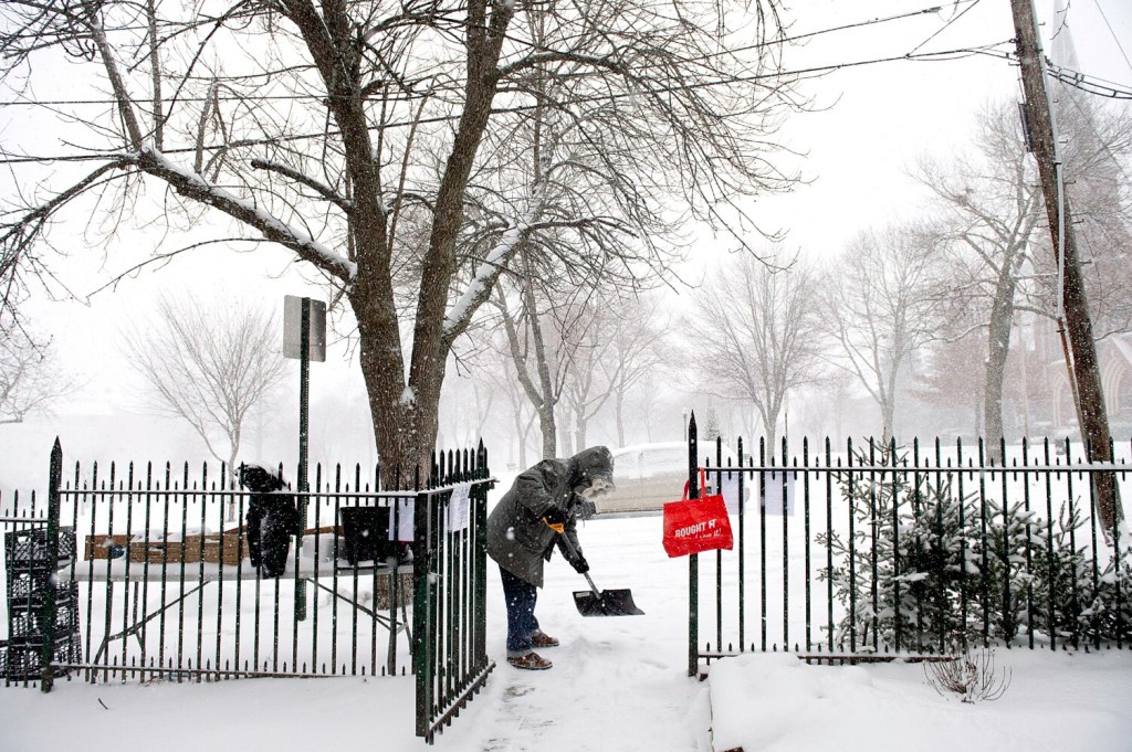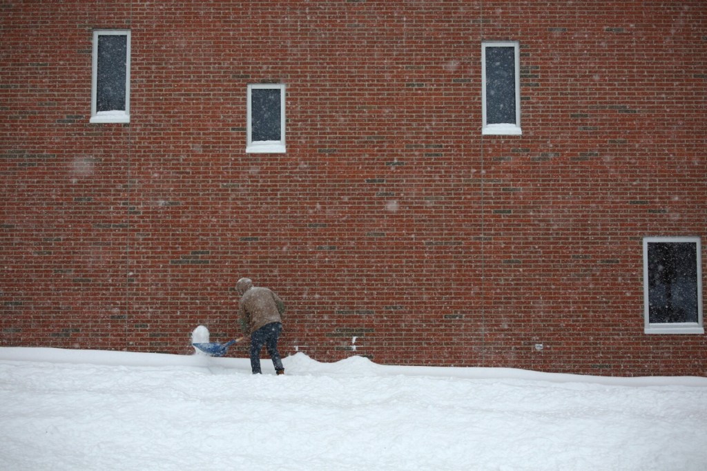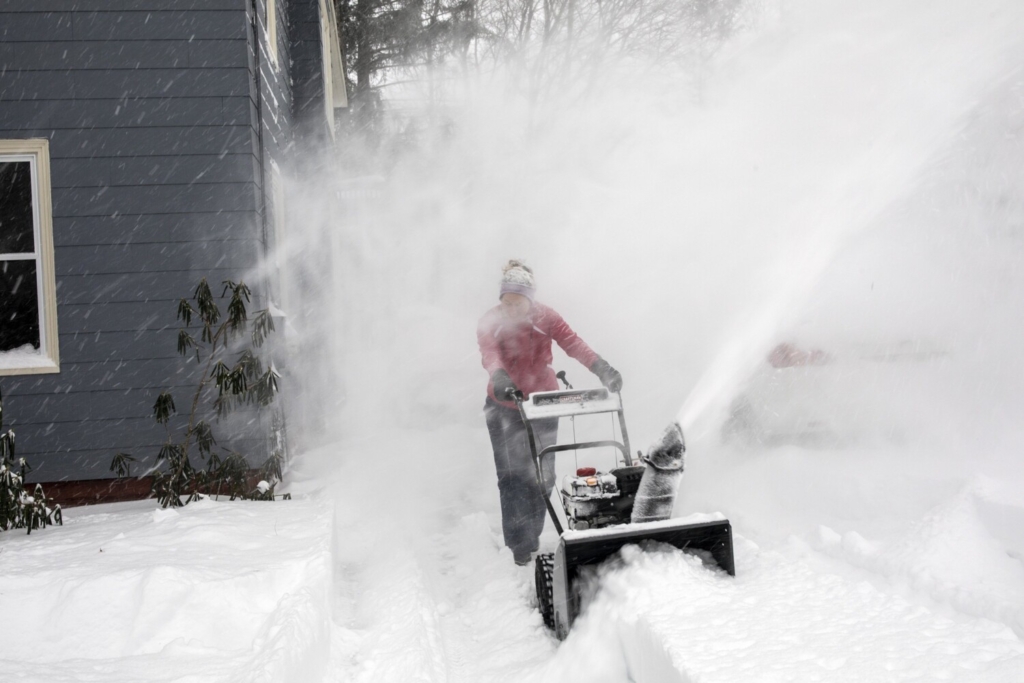 Liana Lemke clears her driveway in Portland at the tail end of the powerful winter storm that hit the Northeast on Thursday. Brianna Soukup/Staff Photographer