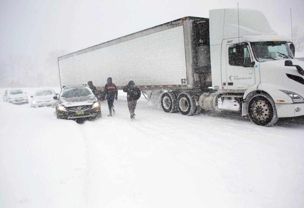 The hazardous conditions caused dozens of crashes in New Hampshire, Connecticut and eastern New York. New York State Police said a snowmobiler was struck and killed by a tractor-trailer on Interstate 787 in downtown Albany at 2:30 a.m.